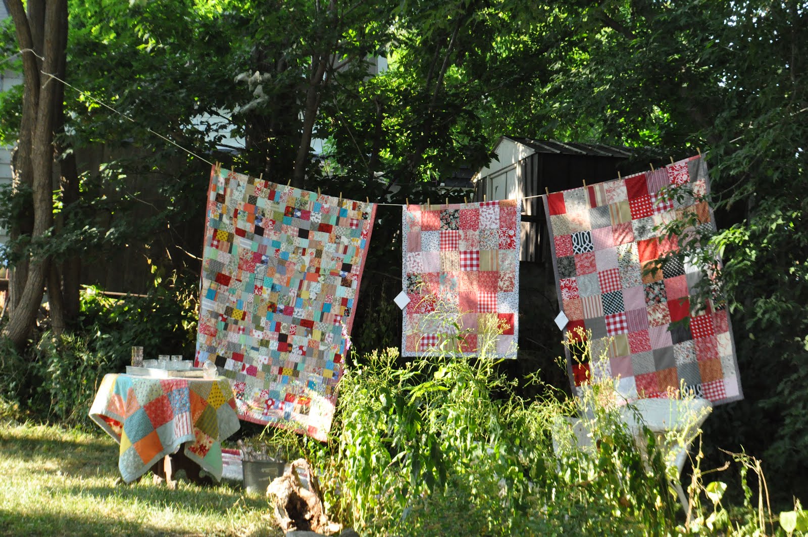 come to 55 mowat to enjoy our little garden event, 'quilts in the trees'.